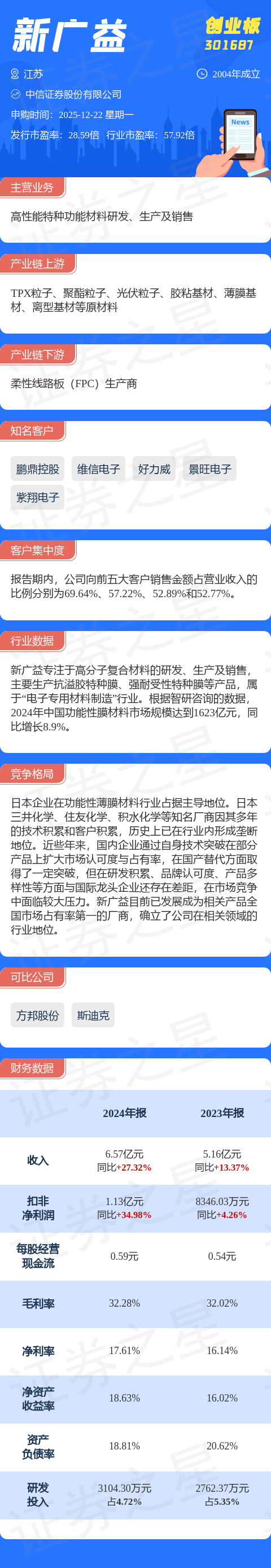 证券之星消息,新广益12月22日网上申购,申购代码为301687,中签号公布日期为12月24日。该股概况请见下图: